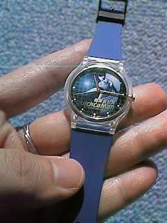 できあがりは思っていたよりもしっかしていているぞ。紺のベルトに黒の留め具、透明なケースというのもイメージばっちり。文字盤の絵がちょっと暗くなってしまったかな。Macintoshのディスプレイ特有のガウス値のせいか?