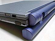 今度は大容量バッテリーを搭載。持ち歩くかどうかもわからないのだけど。カタログスペックなら、これで505EXで3.5〜6.5時間、505Xなら4〜7.5時間持つらしい。4時間持てばいいぐらいかな。普段使ってるPB2400/180が2時間ぐらいだから、4時間も使えればびっくりだ。面白いことに初代VAIO505に搭載しているMMPentium/133は消費電力が約6.1〜6.2Wなのに対して、505XのMMXPentium/166では約2.9W、505EXのMMXPentium/233では3.9Wと二世代目の方が少ない消費電力になっている。性能的にどうなのかわかんないけど、Mobile MMX Pentium(開発コードTillamook)っていう種類らしい。