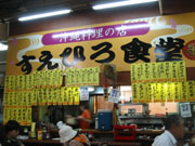 9/24(水) そういうわけで沖縄にやって来た。1年9ヶ月ぶりの沖縄である。初の子連れ旅行なので何から何まで大変だ。民宿に泊まって、食事は近くの安くて美味しい沖縄料理屋。昼は車で出かけて珊瑚礁の海でシュノーケリングといきたいところだが、それはムリ。何でムリかといちいち書いていこうと思ったけど、共通の体験が無ければ議論はできない(スポック:ST4故郷への長い道)。要するに面倒くさいので、そば屋レポートにすることにした。 那覇に到着後、レンタカーを借りて、すぐに識名の「てんtoてん」という沖縄そば屋に向かった。ここは木灰の灰汁で手打ちした生麺が特徴で、沖縄そばにしては珍しく、つるつるもちもちしている。一般の沖縄そばのそばは、一度ゆでてから油をまぶしてさましておく。讃岐うどんの打ち立ての即ゆで立てがうまいという常識からすれば、信じられない麺類なのだ。ところが話を聞くと、てんtoてんの麺は注文を受けてからゆでるらしい。スープはとてもあっさり。沖縄に来たら毎回食べずにはいられない。 9/25(木) 昼は、桃原(とうばる)にある沖縄そば屋「しまぶく」に行った。ここのスープは豚骨にカツオの香りぷんぷんなのが特徴。麺は少し細目だけど噛むと程よい粘り気と弾力がある。今回の旅行では一番美味しいと思ったそばだった。R恵と2人で、そば大を3杯食べてしまったほど。なんというか、そばとスープのバランスが絶妙なんです。去年の1月に行ったときの日記を読んでも☆5つつけていた。9/26(金) 沖縄海洋博公園内にある美ら海水族館に行ってきた。去年の1月に行ったときは、まだ建設中だったところだ。新しいところなので観光客がすごかった。みんなカメラ付き携帯を構えて必死な感じがバカみたいに見えた。この1年9ヶ月でカメラ付き携帯がどれだけ普及したかを知ることができた。K汰は水槽のあちこちを指さしてかなり興奮していた。海洋博公園に行ったら「まんてん」に行かねばならない。つまり今日も昼はそば。ここのそばは手打ちで、触感が柔らかいのが特徴。麺の厚みや太さが均一じゃなくてぼこぼこしている。「ヨモギそば」というメニューがある。北部では割と一般的で、普通はヨモギがトッピングされているのだが、まんてんのは麺に練り込んである。食べているうちにヨモギの味と香りがスープに溶け出してくるのがとてもうまい。スープはまろやかで優しい味。 9/27(土) 宿をチェックアウトして国際通りで買い物。牧志の公設市場2階にある「すえひろ食堂」で昼食にした。ソーミンチャンプルーとナーベラーンブシーを食べた。子連れ旅行はとても疲れた。K汰もいろいろ連れ回されて大変だったろうと思う。1才3ヶ月の子供を沖縄に連れていくなんて、親のエゴ以外の何ものでも無い。ま、子育てそのものが親のエゴといえばそうなのだが。しかし沖縄に行ったら急によく食べるようになった。帰ってきてからも、今までの3倍は食べている。なんかの刺激になったらしい。 | |