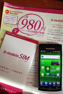 去年の5月ぐらいに買って、仕事で使ったのはいいんだけど、それ以後はほとんど使っていないSIMロックフリーのXPERIA arcがあります。使わないのは外で使えない(回線契約がない)からじゃないかと思って、月額定額980円というイオン専用のb-mobileを導入してみました。