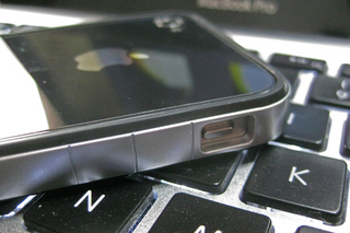 Dockコネクター側のアップ。このへんも元のデザインを損なわない感じでいいと思う。標準のドックコネクターケーブルはしっかりささるし、SDI iP27というDockコネクターで接続するタイプのポータブルスピーカーにも、バンパーをつけたままで接続できました。ストラップホールはありません。