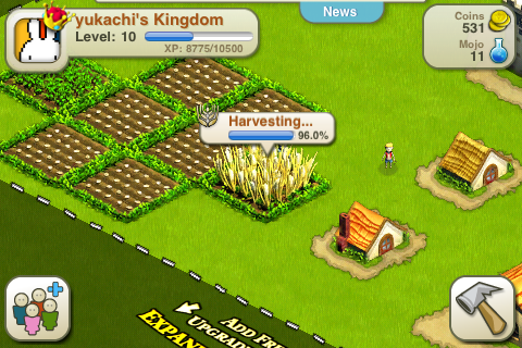 最初にお金を稼ぐためにひたすら畑を耕し収穫します。最初はトウモロコシしか育てられないんですけど、レベルが上がるにつれてにんじんとかイチゴとかどんどん植えられるものが増えていきます。