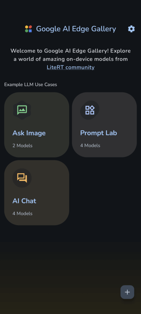 ギャラリーから画像解析、テキスト要約・コード生成、チャット形式でのQ&Aなどの機能を持つAIモデルをダウンロードし、端末上で利用できます。ユーザーが用意したAIモデルを導入して動作させる機能も用意されています。