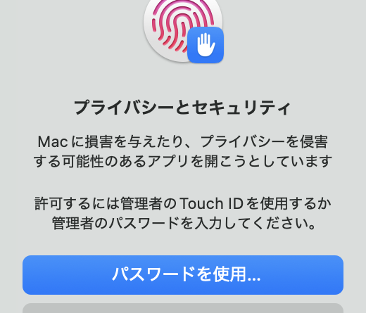 続きを読むAppleに開発元が登録されていないアプリのことを、ここでは野良アプリとします。 普通に起動すると「Macに損害を与えたり、プライバシーを侵害する可能性のあるマルウェアが含まれていないことを検証できませんでした」というダ